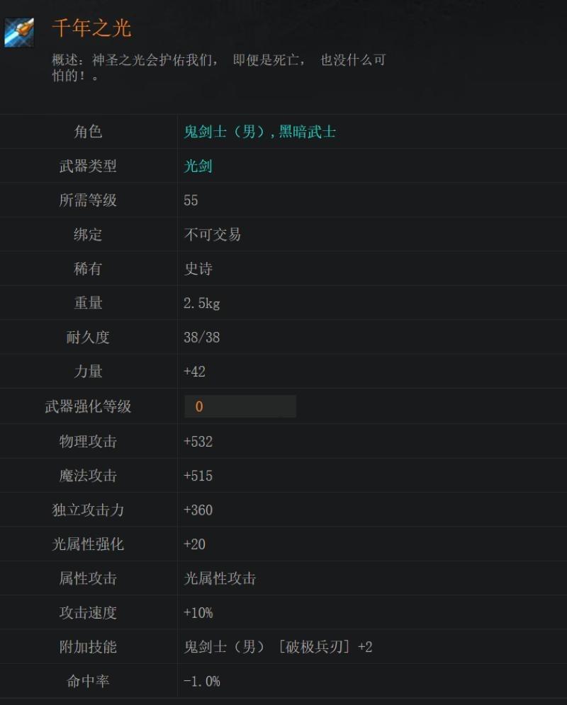 地下城勇气(夜语黑瞳太刀)属性:技能攻击力增加40附加属性强化伤害...¥55